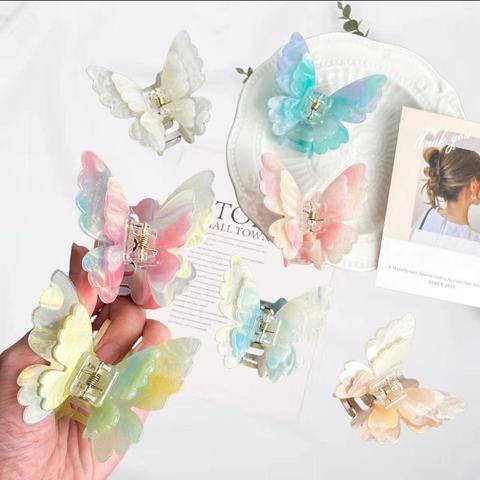 Pinza de pelo de mariposa doble Super Fairy, nuevo gradiente de acetato, todo, tablero de Cabeza trasera, garra de pelo de tiburón