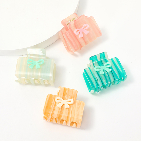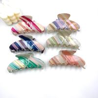 Trendy Striped Hair Claw Hairpin Acetate Metal-Plastic with Sweet Textured Design for Girls