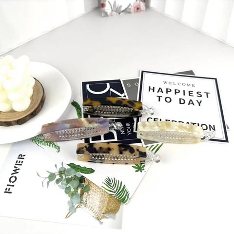 French Large Rectangular Hair Clip Simple Tortoiseshell Design with Advanced Temperament Shark Headwear Made of Durable Acetate